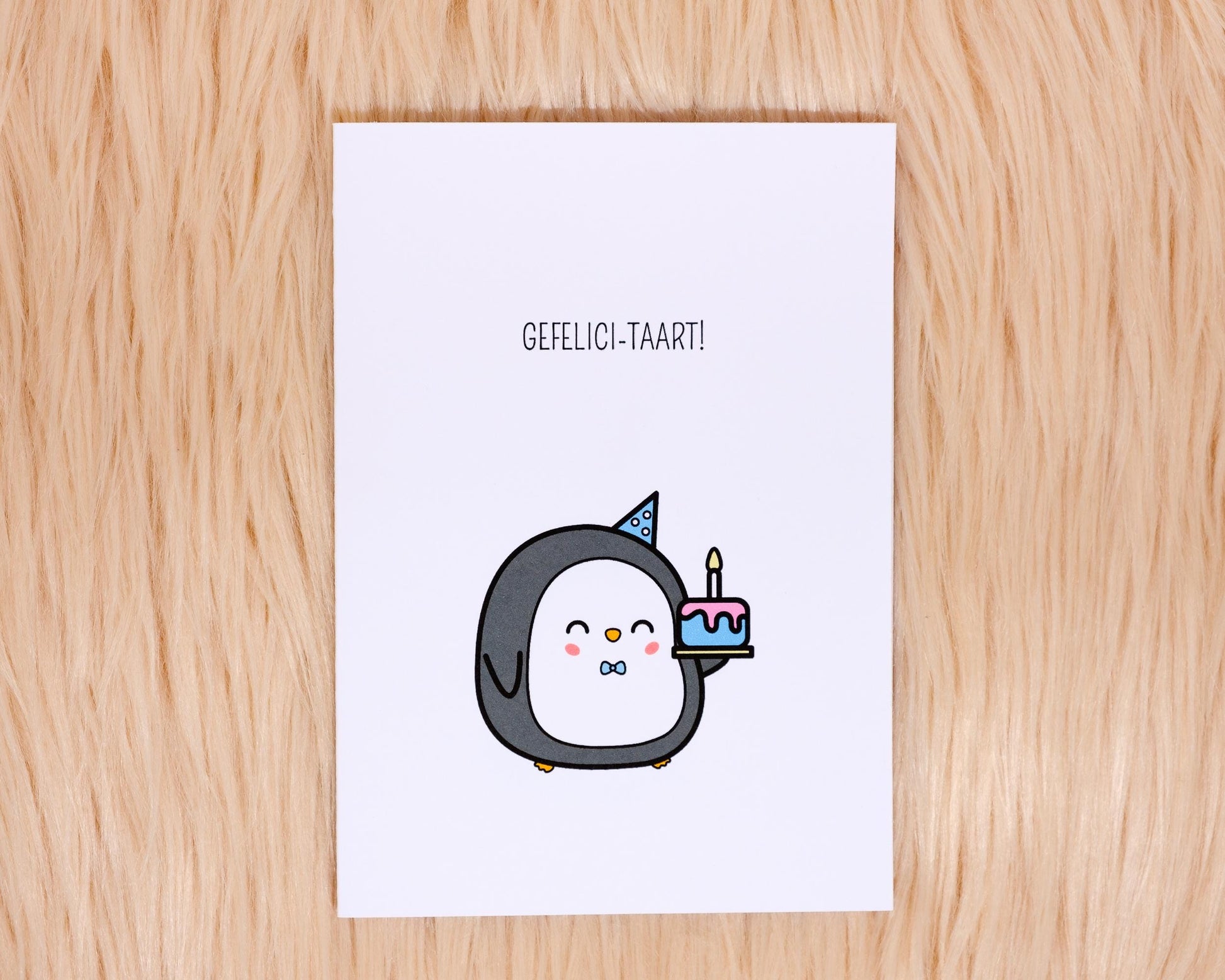 Zag jij ooit al een een penguin in een feesthoedje met een taart? Nu dus wel! Deze penguin is heel blij, we weten alleen nog niet goed waarom... Dat mag jij beslissen! Geef je deze kaart voor iemands verjaardag, omdat ze op pensioen gaan, omdat ze in verwachting zijn...? De mogelijkheden zijn eindeloos!