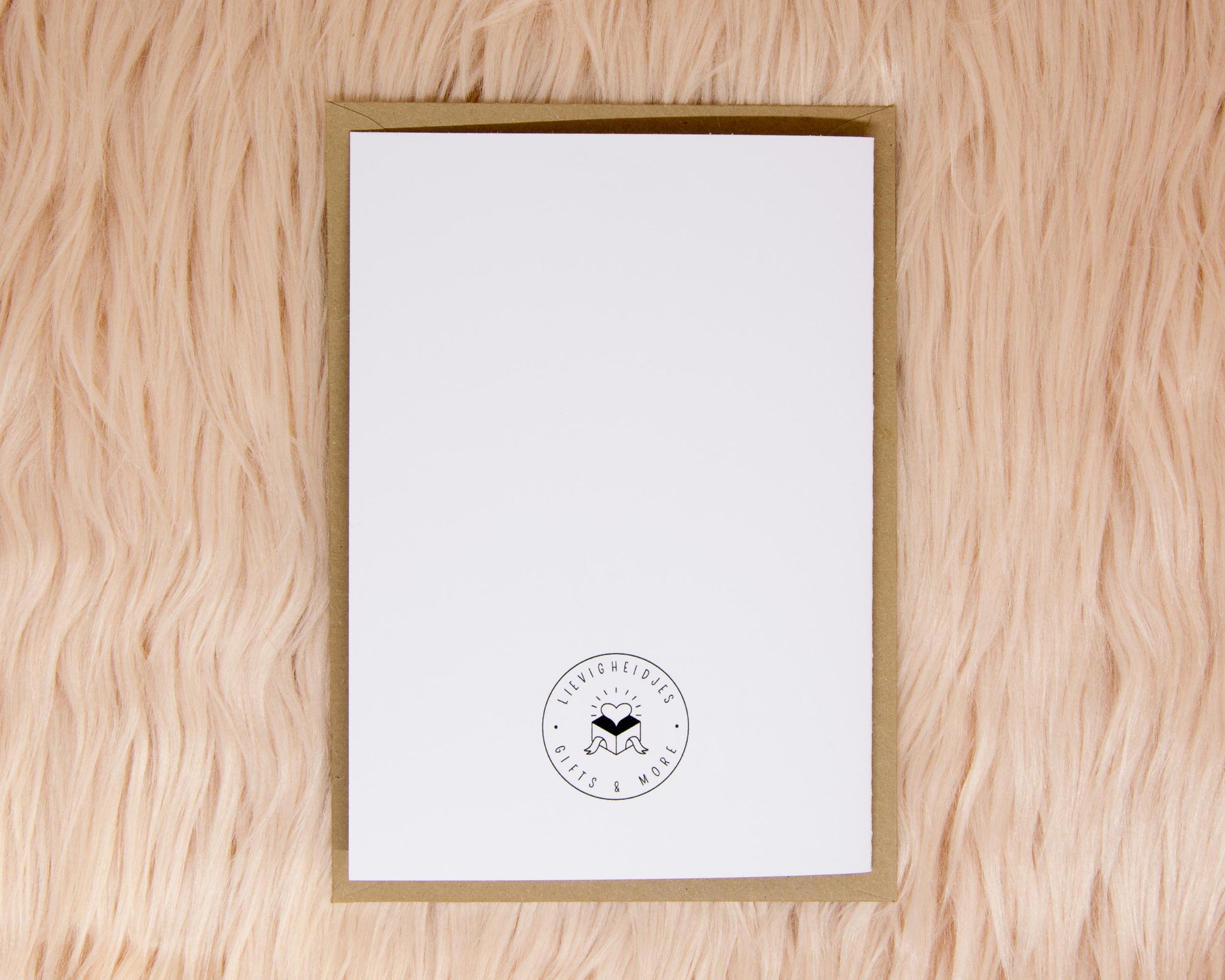 Alle kaartjes zijn blanco binnenin, hebben een formaat van A6 wanneer het dichtgevouwen is, en hebben het logo van Lievigheidjes op de achterkant. Elk kaartje wordt geleverd met een passende bruine envelop uit gerecycleerd papier en een Lievigheidjes-sticker om de envelop dicht te plakken (of waar je hem graag wil plakken).